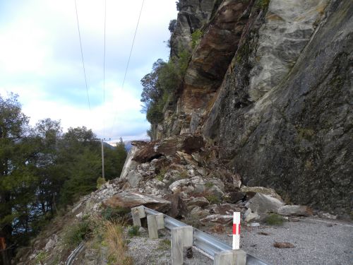 The slip, which has fallen in an area known as the ‘narrows’ on the Glenorchy side of Bobs Cove, fell just before 9am this morning, Queenstown Lakes District Council infrastructure services general manager Mark Kunath said.