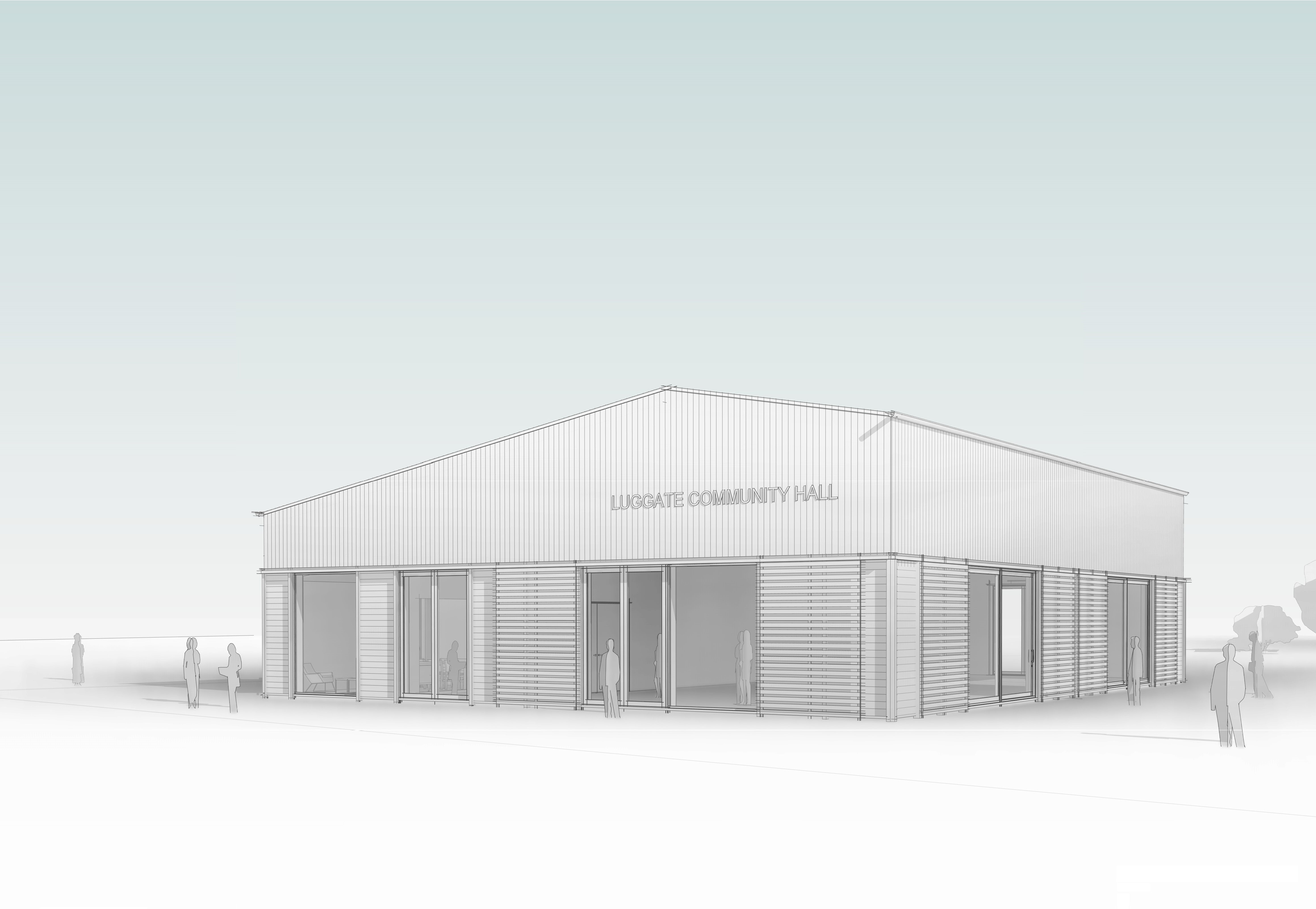 Above: Early concept drawing of Luggate Memorial Hall.